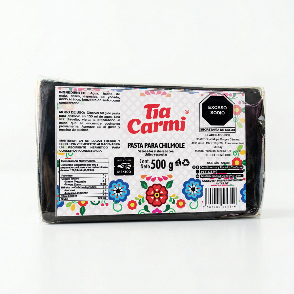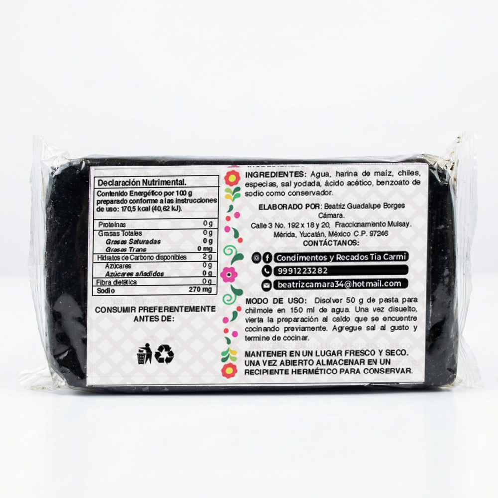 PASTA PARA CHILMOLE (RECADO NEGRO) TIA CARMI DE ELABORACIÓN ARTESANAL.